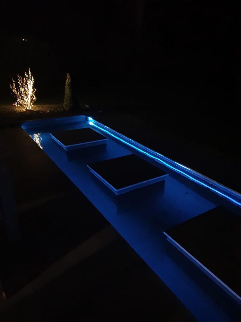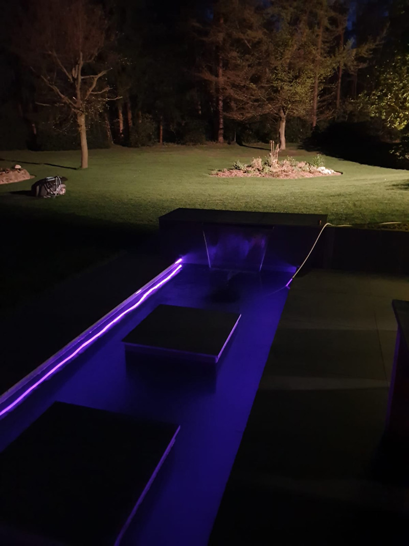 Keramikterasse mit eingelassenem Teich incl. Wasserfall